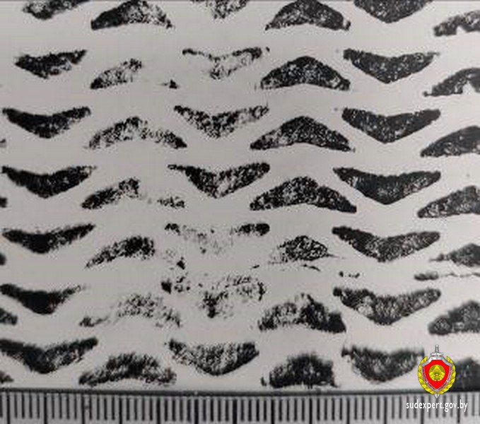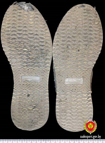 В результате проведенной судебной трасологической экспертизы, при сравнительном исследовании рисунков изъятого следа обуви и экспериментальных оттисков ходовых поверхностей кроссовок, установлено совпадение с участком в подметочной части кроссовки для левой ноги.