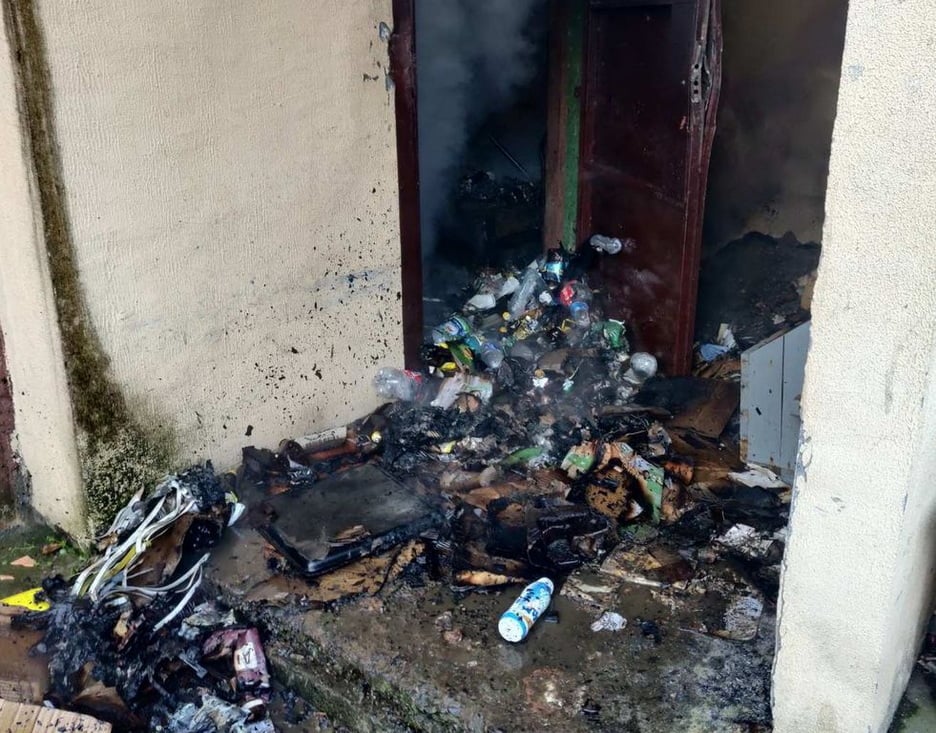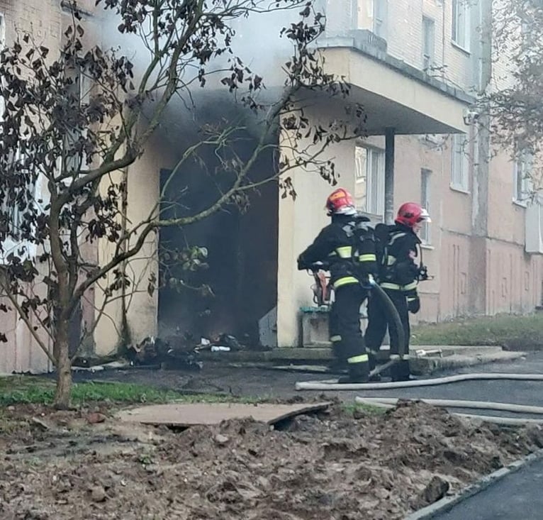 В тот же день, 16 октября, в 08:20 поступило сообщение о возгорании мусороприемной камеры возле подъезда многоквартирного дома на улице Дзержинского в Гродно. Работники МЧС быстро прибыли на место и потушили огонь, однако повреждены были лакокрасочное покрытие стен подъезда и стены в помещении мусороприемника. Вероятной причиной стало неосторожное обращение с огнем.