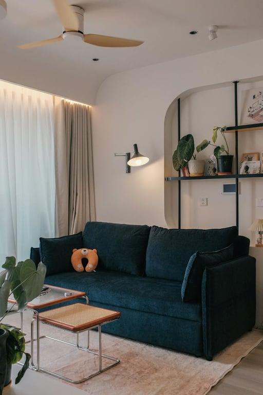 Хотя выбор небольшой мебели для маленьких квартир кажется логичным, предметы большего размера, такие как большие ковры или одна художественная картина на стене, могут создать ощущение гармонии и простора. Правильно подобранная мебель может сделать пространство более организованным и визуально больше.