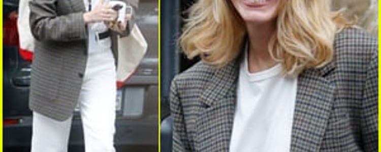 Для новой роли Джулия перекрасилась в блондинку, сменив привычный каштано-рыжий оттенок на светлый. Актриса была одета в светлые джинсы на высокой талии, белую футболку и коричнево-серый пиджак в мелкую клетку.
