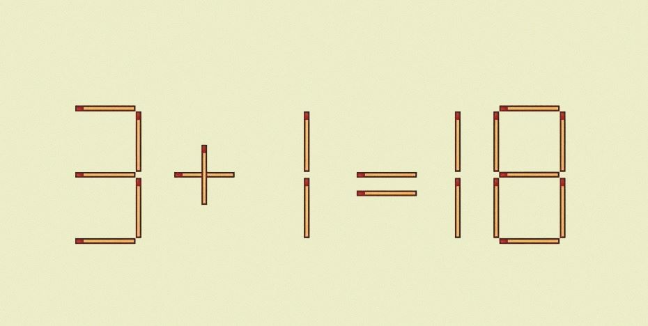 А ваш мозг быстро запускается? Проверьте это, переставив 1 спичку в 3+1=18