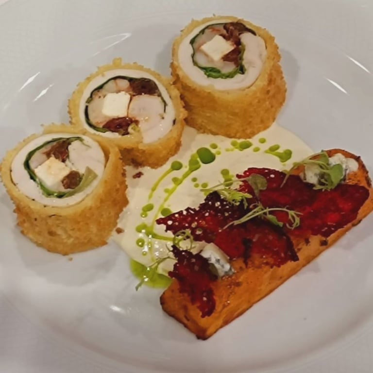 Ролл с семгой и икрой, с овощами гриль и сливочным соусом Дмитрия Пучинского отмечен бронзовой медалью.