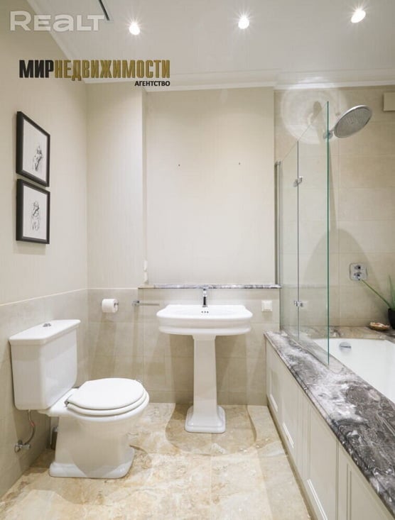 Общая площадь квартиры составляет 155,7 кв.м., площадь по СНБ — 156,0 кв.м., жилая площадь — 92,4 кв.м., просторная кухня — 15,0 кв.м. Для удобства предусмотрено два санузла. Высота потолков в квартире — 3,18 м, что придает помещениям дополнительное ощущение простора.