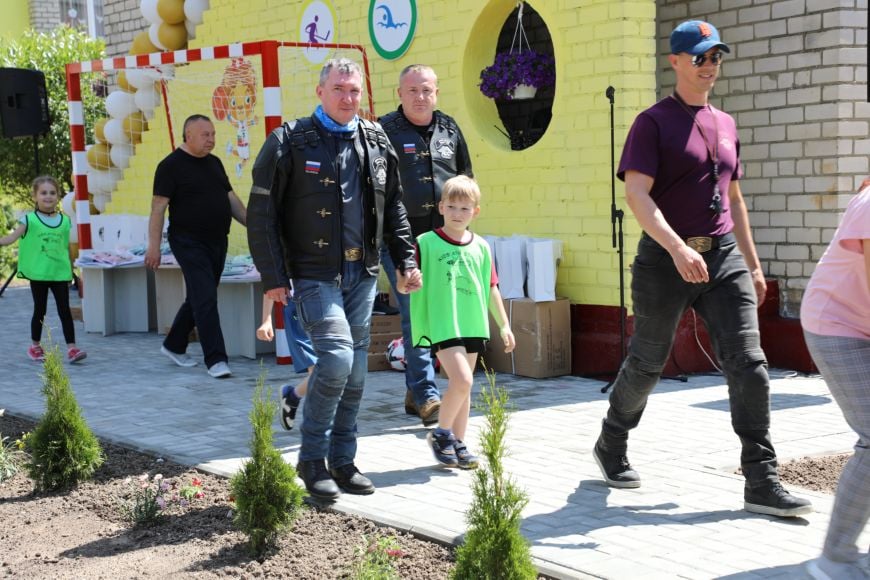 Гостей ожидала спортландия, угощения от ребят. И, конечно, мотоциклисты приехали не с пустыми руками. Ребятам подарили футбольные ворота, экипировку, мячи и необходимый инвентарь для занятия самым популярным видом спорта. Без внимания не остались и дома семейного типа, которые также приехали на праздник, — байкеры подарили деткам батуты.