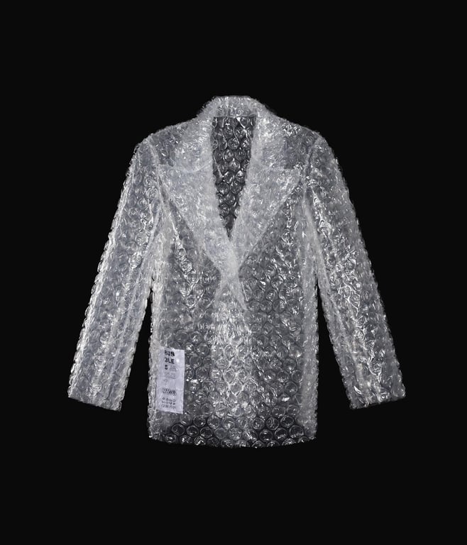 Белорусский бренд создал платье и пиджак из пупырчатой пленки. Почем продают?