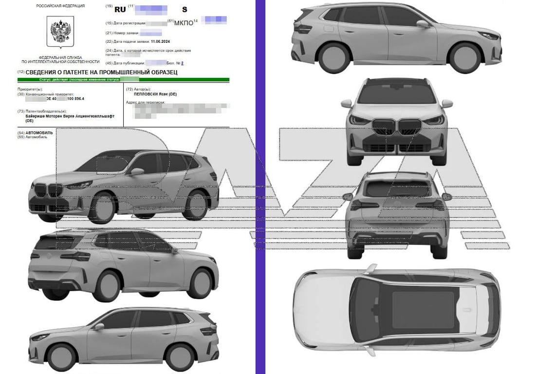 Согласно данным, еще летом 2024 года BMW подала заявки на патентование промышленных образцов двух автомобилей, внешне напоминающих модели BMW 2-series Gran Tourer и X3 (2025 года выпуска). В январе 2025 года патент был официально оформлен. Эксперты отмечают, что регистрация патента не свидетельствует о планах компании возобновить официальные поставки в Россию. Скорее всего, это шаг направлен на защиту интеллектуальной собственности и предотвращение копирования моделей другими автопроизводителями.