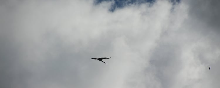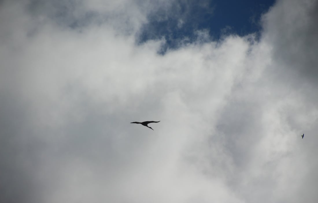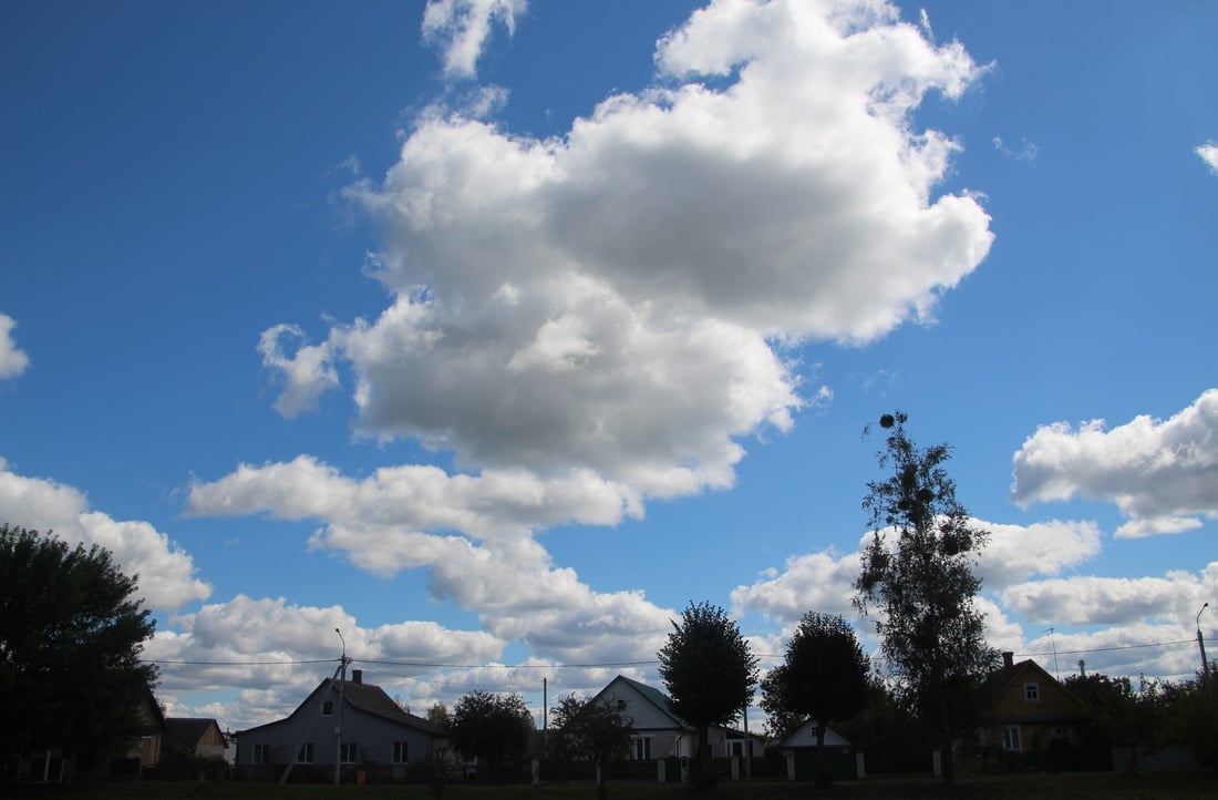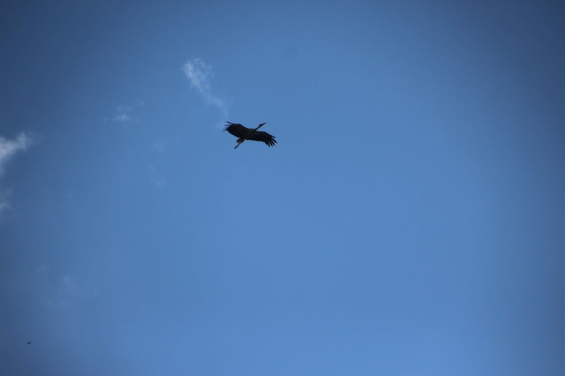 В небе высоко над головой величественно парит аист, который поднимается всё выше и выше, словно стремится достичь облаков. А облака такие невероятные, будто замерли в синеве. Даже маленькие воробьи наслаждаются солнечным теплом.