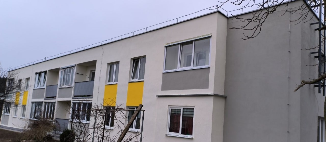 В жилых домах №1 и №3 в переулке Молодёжном в Гродно завершены работы по комплексному капитальному ремонту. Они продолжались четыре месяца. В Гродненском ЖКХ отметили, что скучные серые дома изменили свой внешний облик.