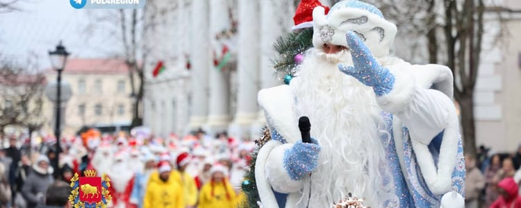 Было зрелищно. По центру Гродно прошли около полутысячи Дедов Морозов и Снегурочек
