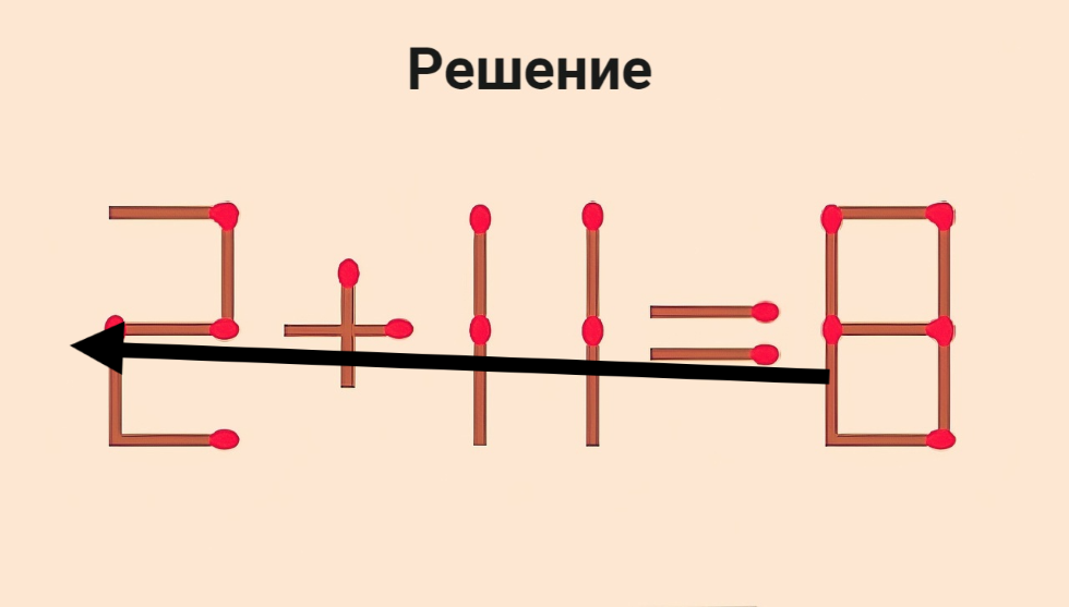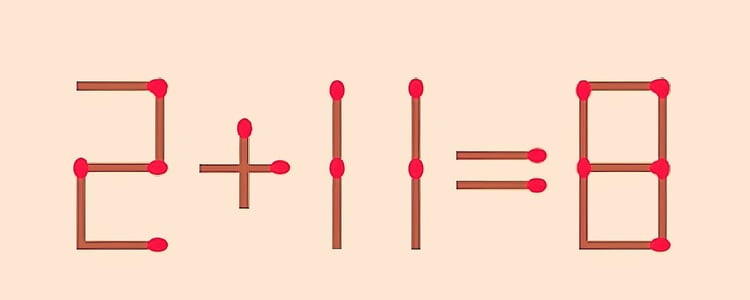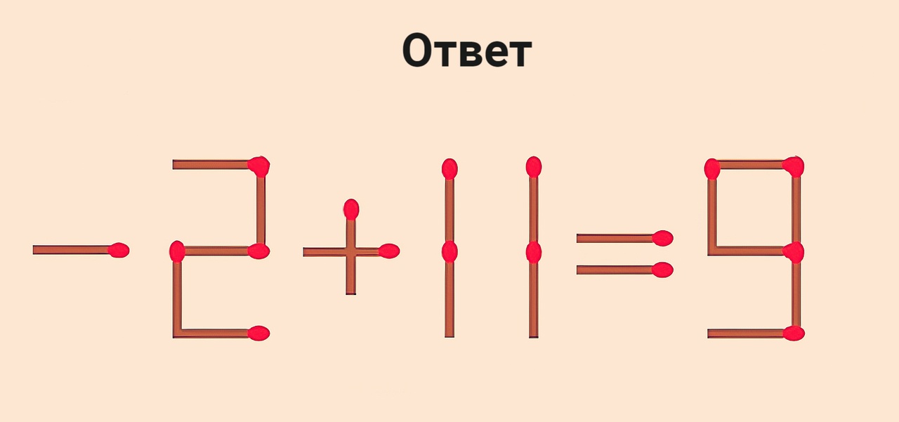 Решите 2+11=8 правильно. Условие: переставить на другое место можно только 1 спичку. Если на это уйдет менее 10 секунд, вы сегодня — победитель. Ваш звездный час пробил! Вы заслужили награду — какую, решите сами.