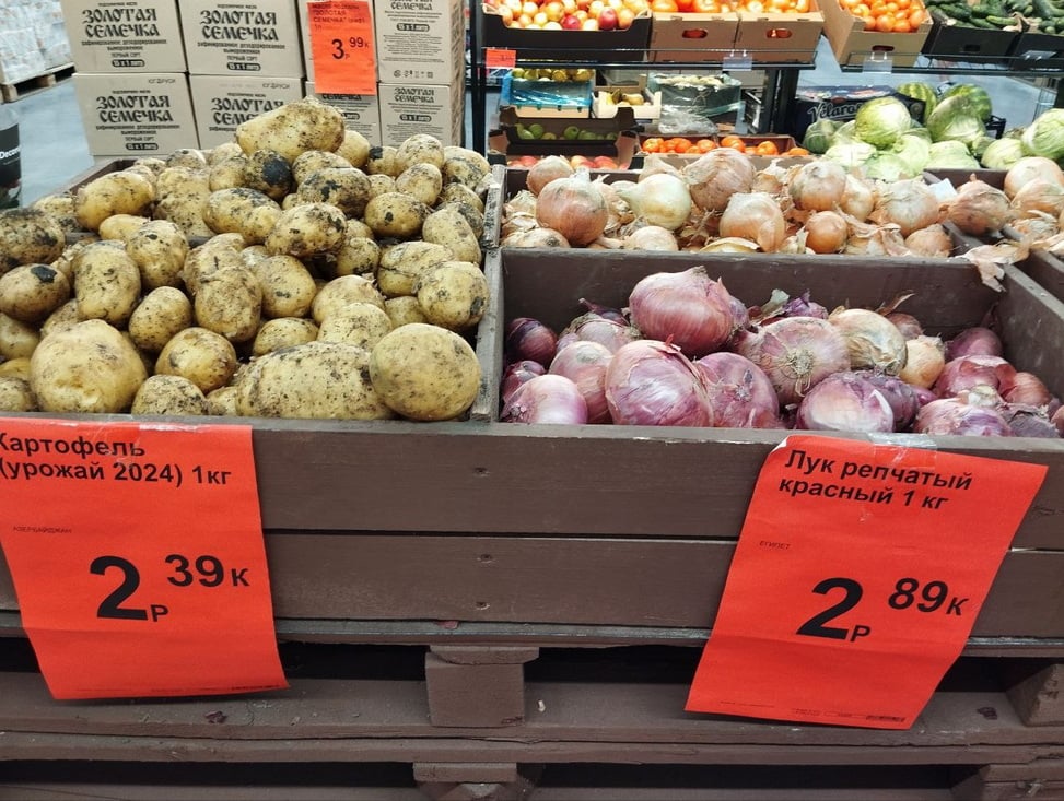 Также магазин «Маяк» предлагает более низкие цены на картофель (+1,25 руб. / -1,50 руб.), капусту (-0,14 руб.), свёклу (-0,06 руб.), репчатый лук (-0,14 руб. / -0,26 руб.), репчатый красный лук (-0,26 руб.), чеснок (-1,00 руб.), морковь (-2,10 руб.) и огурцы (+0,10 руб. / -0,14 руб.).
