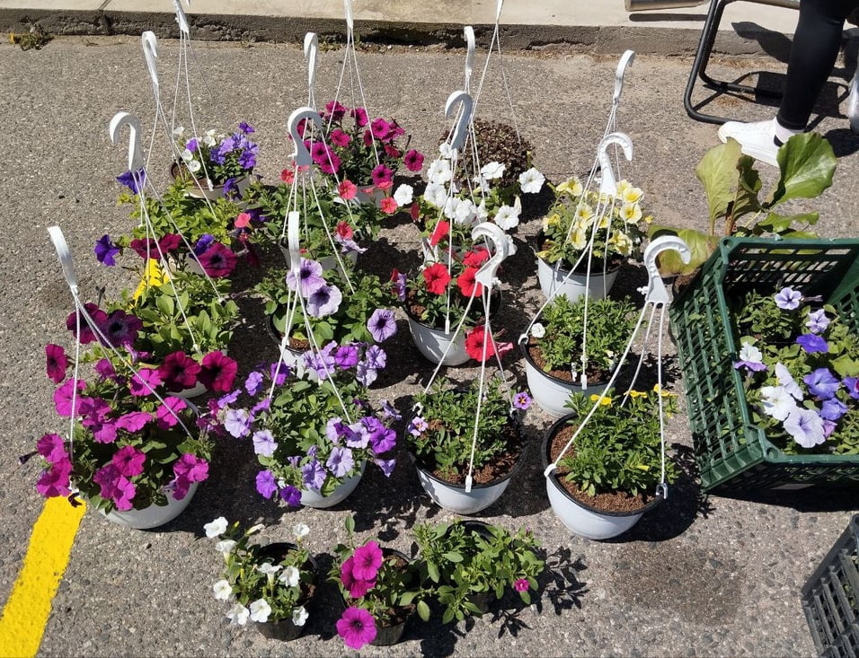 Помимо плодовых деревьев и кустарников, на рынке продаются также цветы. Например, куст розы можно купить за 7 руб., остеоспермум (ромашка) – за 13 руб. за куст, газанию – за 5 руб. и кашпо с петуниями – за 15 руб.