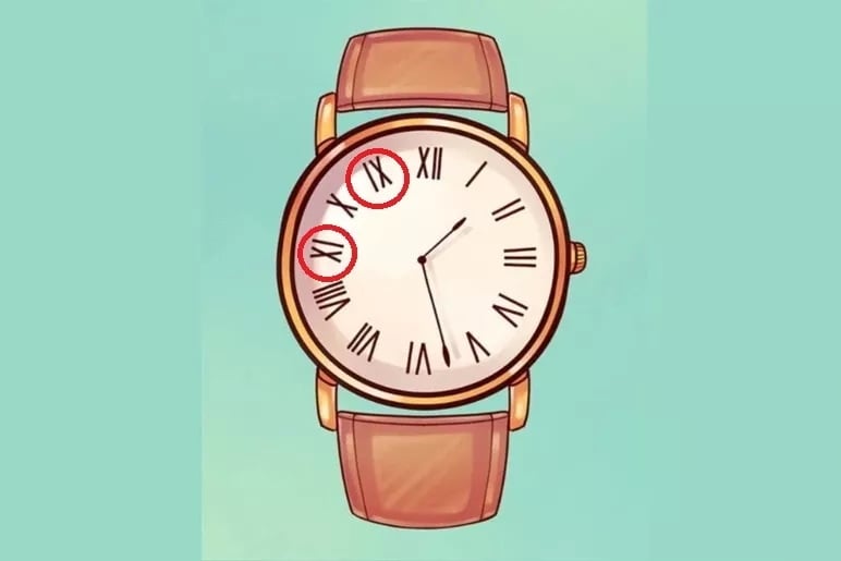 Обратите внимание на римские цифры: IX (9) и XI (11) перепутаны местами. Именно в этом заключается ошибка, которая бросается в глаза только самым внимательным.