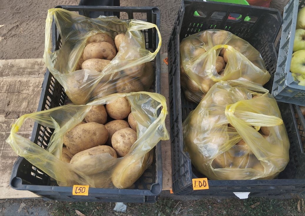 Частники картофель продают по 0,80 – 1,50 руб., перец – 4,50, помидоры – 2,80 руб., огурцы – 4 руб., груши – 4 руб., яблоки – 1,50 – 2 руб., лук репчатый – 1,80 – 2 руб.