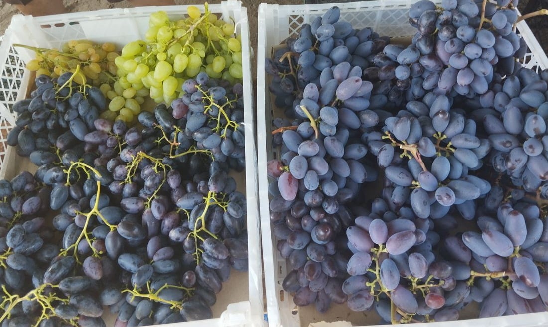 Одна женщина продавала домашний виноград по 10–12 руб. На вид он сочный и отборный, и, наверное, вкусный. Она отметила, что благодаря жаркому лету удалось вырастить такой отличный виноград.