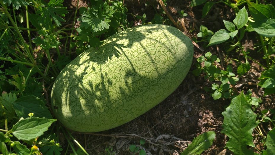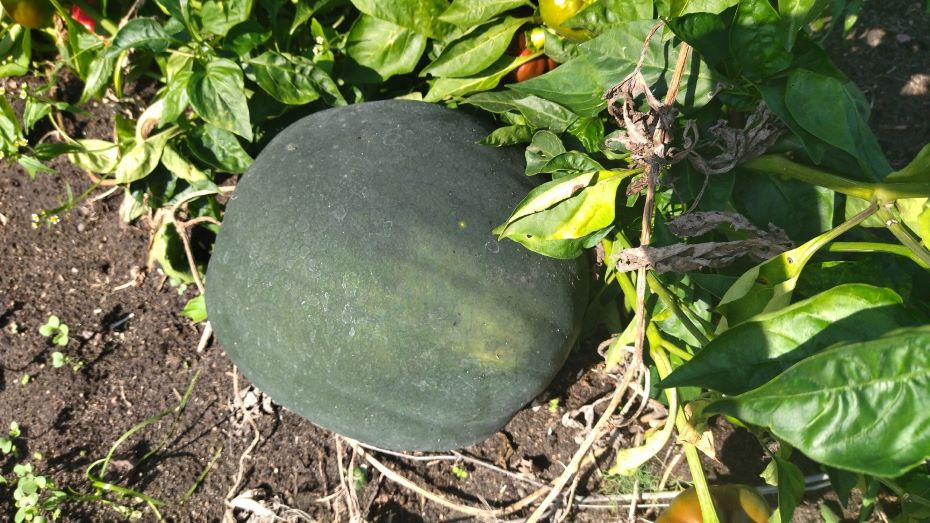 — В прошлом году я тоже выращивала арбузы — сорта Огонек и Сахарный малыш. Но урожай не впечатлил. Какие-то плоды сгнили на грядке, и так, скорее всего, семена попали в почву. А поскольку и зима, и весна были аномально теплыми, семена сохранились и взошли этой весной — по соседству с перцами на грядке, которая была укрыта парником. Я увидела ростки, когда полола перцы. Не стала их вырывать. Так и вырос рядышком с перцами арбуз и дыня, — поделилась огородница.