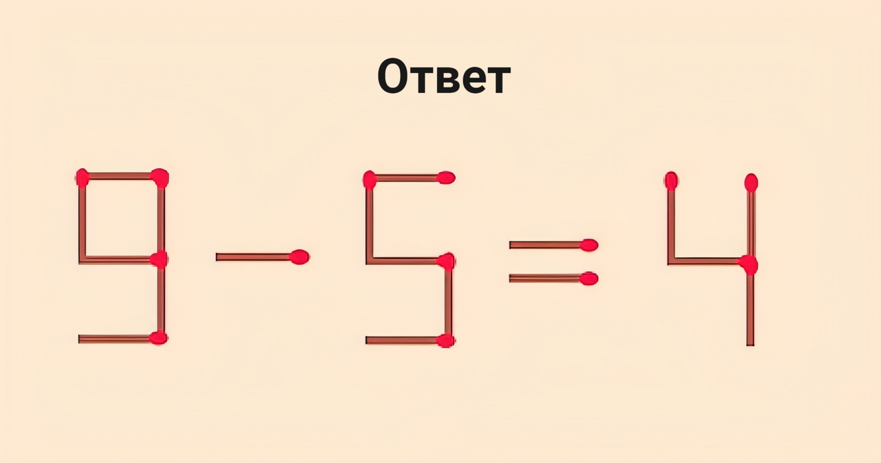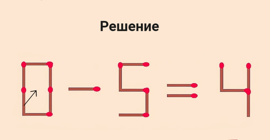 Для особо смекалистых: переставьте 1 спичку в 0–5=4, чтобы равенство стало верным