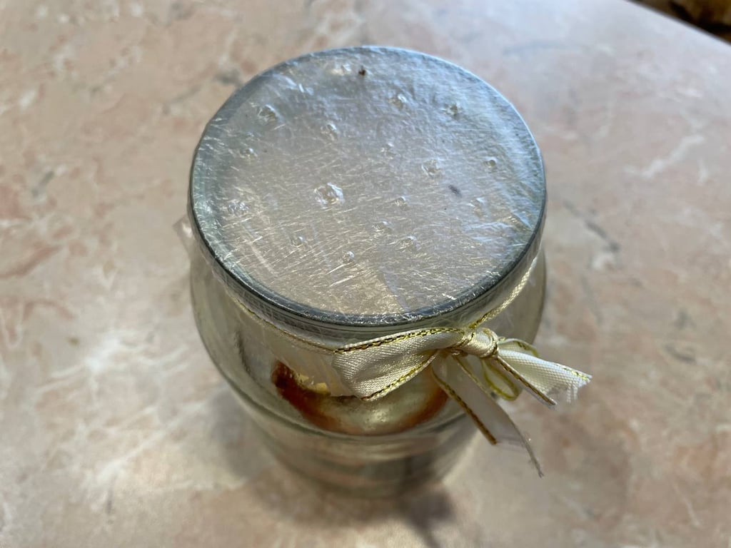 В банку кладем кусочек подпорченного фрукта. На дно банки можно налить немного подслащенной воды. Горлышко банки затягиваем целлофановым пакетиком и фиксируем резинкой или веревочкой.
