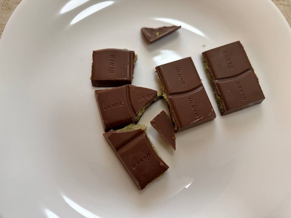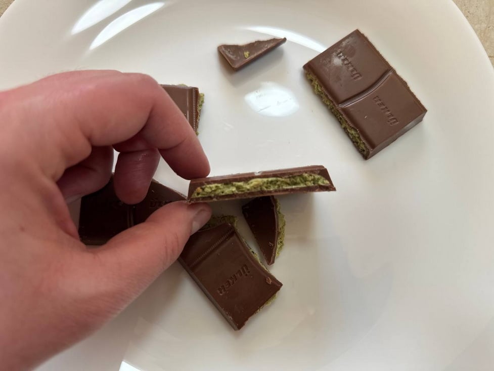 Вкус шоколада сладкий с лёгким ароматом фисташки, но в целом ничего необычного в нём мы не обнаружили.