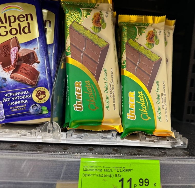 В Слониме в "Евроопте" недавно появился дубайский шоколад, но произведённый в Турции компанией Ülker.
