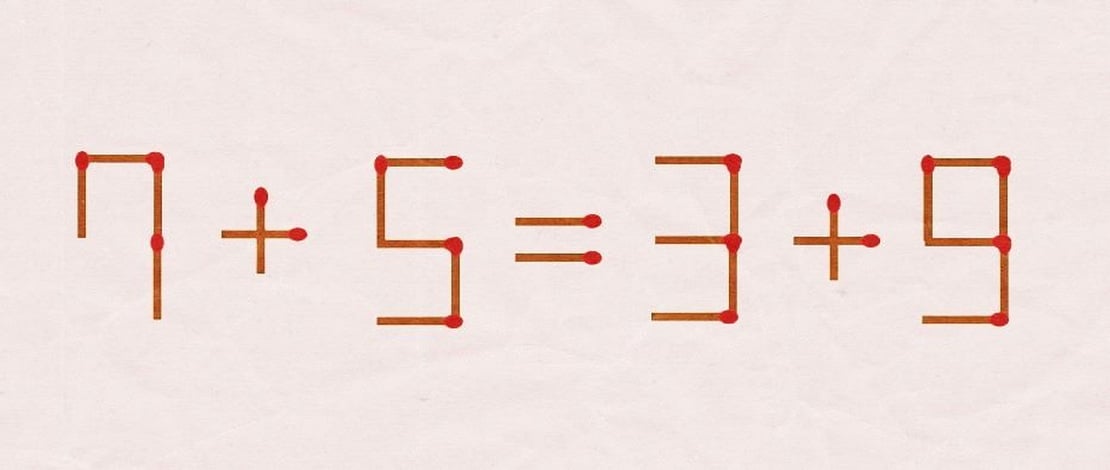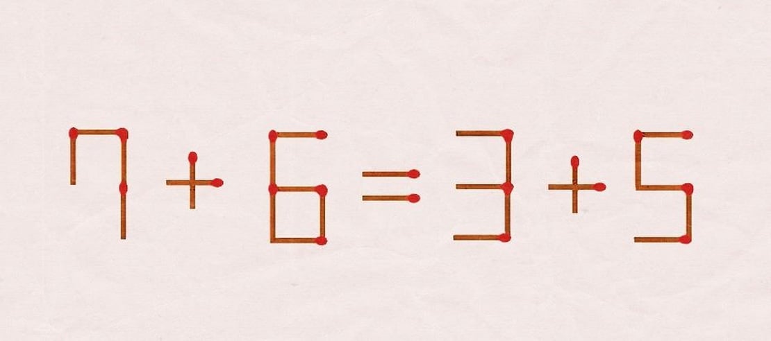 Для этого попробуйте решить следующую задачу: исправьте неверное равенство 7+6=3+5, переставив всего одну спичку. У вас будет 17 секунд, чтобы превратить это равенство в верное.