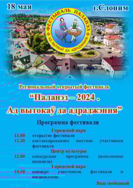 В субботу, 18 мая, в Слониме состоится региональный открытый фестиваль «Полонез-2024. Ад вытокаў да адраджэння».