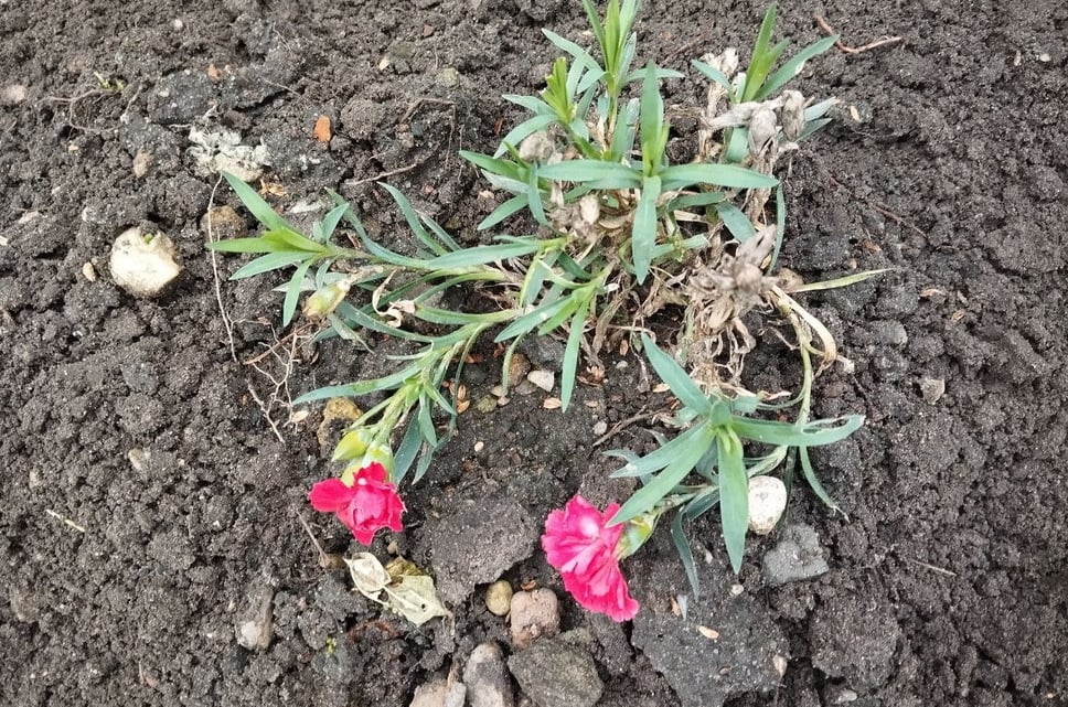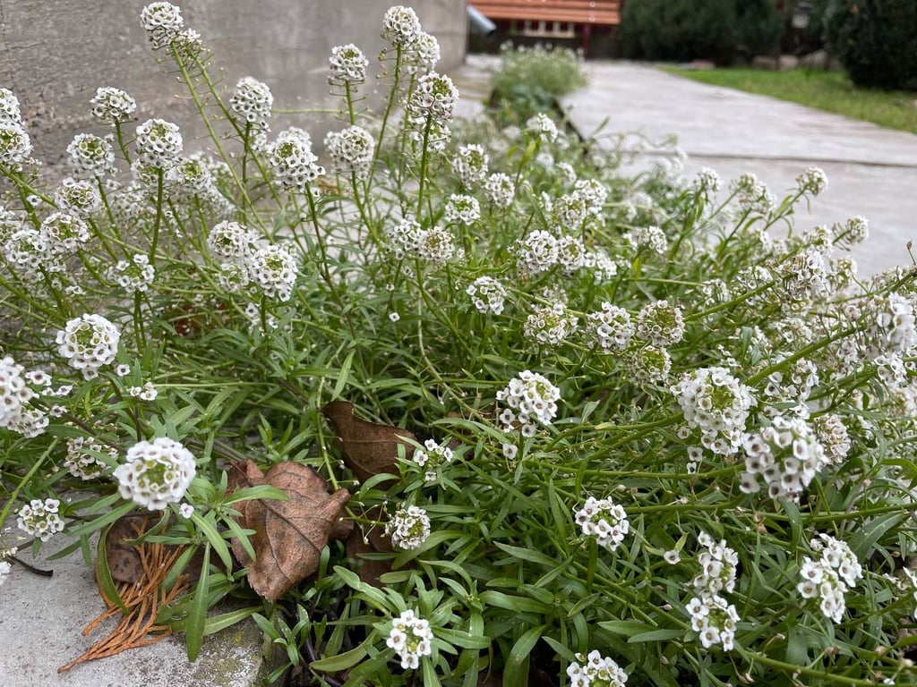 На одной из клумб я заметила цветущие фиалки, алиссум и гвоздику. Правда, гвоздика была единственной, видимо, самой стойкой из всех. А вот алиссум и фиалки цветут не хуже, чем летом.