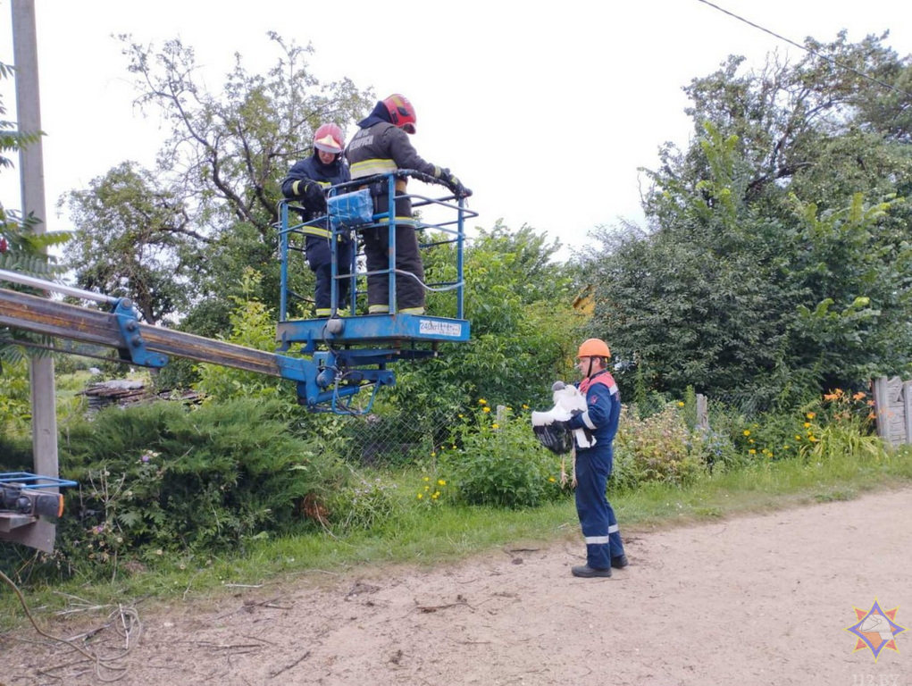 2 июля на линию «101» обратились обеспокоенные жители д.Холмичи Брестский района. Они просили поднять гнездо с аистятами, которое со столба сбросило порывами ветра.