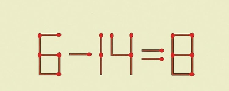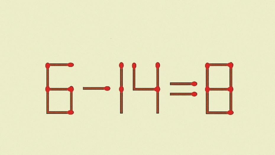 Головоломка для обладателей высокого IQ: переставьте 1 спичку в 6–14=8