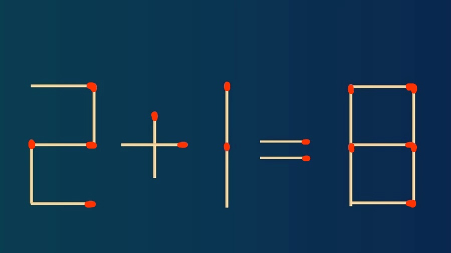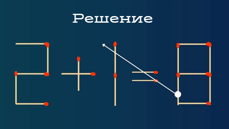 Головоломка на подтверждение гениальности: переставьте 1 спичку в примере 2+1=8