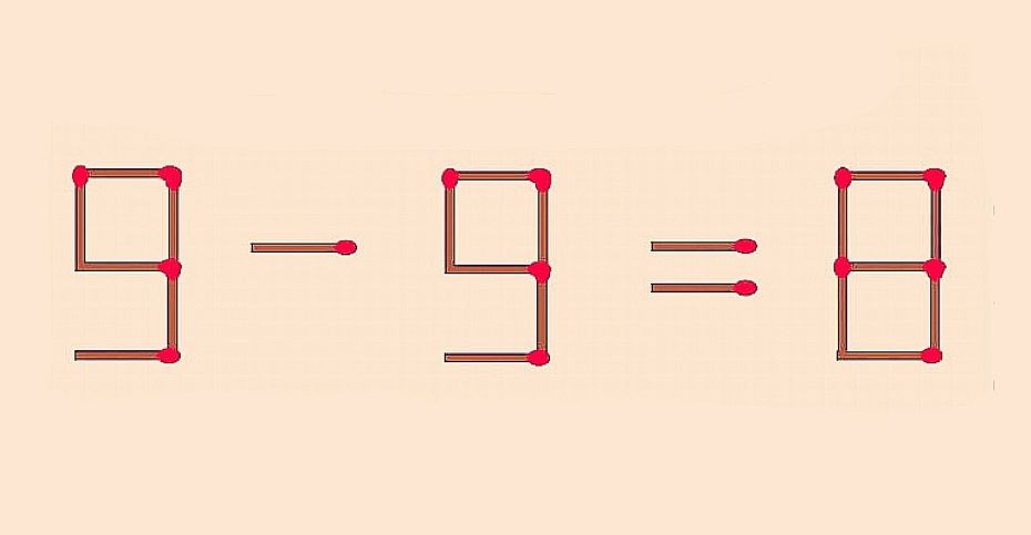 Готовы сегодня сразиться с головоломкой? А она интересная: 9-9=8. Следует переставить на другое место 1 спичку так, чтобы равенство стало верным. На задание отводится классических 10 секунд. Если уложитесь в указанное время — вы просто гений. Возможно, вам стоит подумать об участии в игре «Что? Где? Когда?», поначалу хотя бы на региональном уровне.
