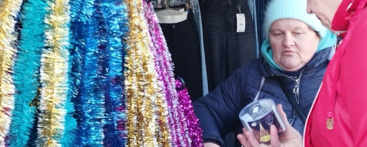 Готовимся к новогоднему празднику! На прилавках слонимского рынка появились первые новогодние игрушки и аксессуары