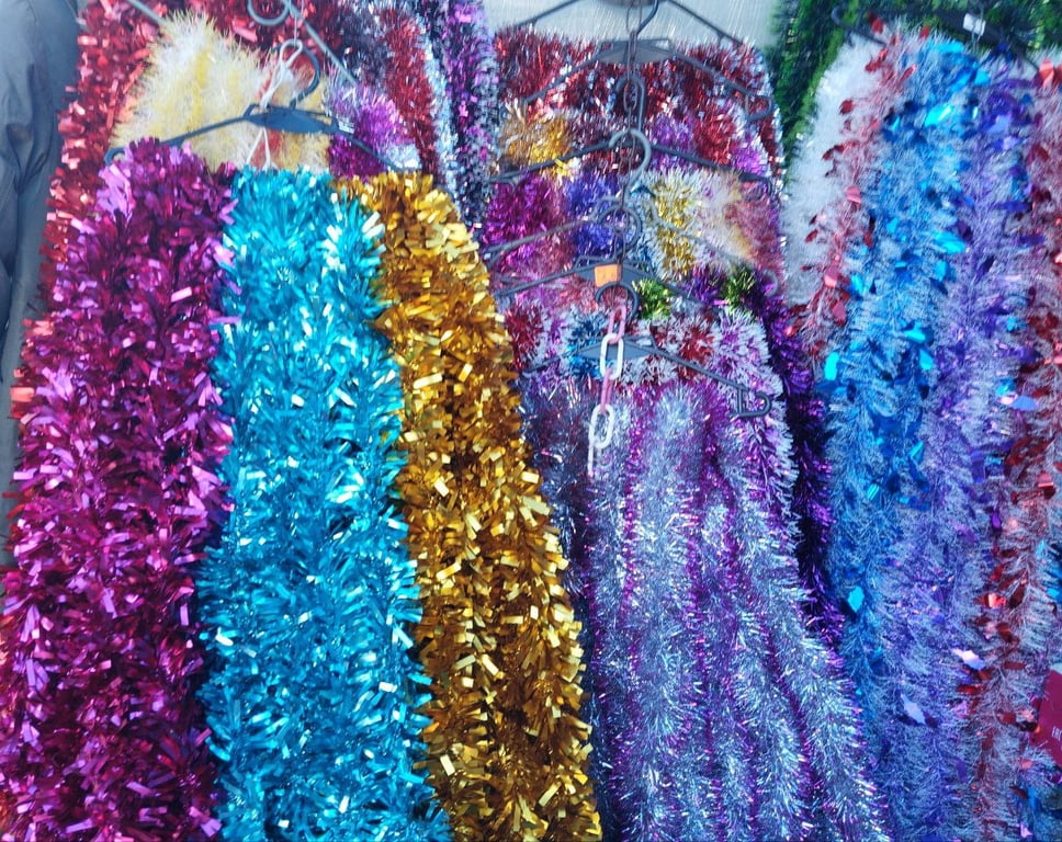 Цены на новогодние товары вполне доступные. Мишура стоит от 0,70 до 2 рублей в зависимости от размера, гирлянды можно приобрести по цене от 5 до 25 рублей и выше.