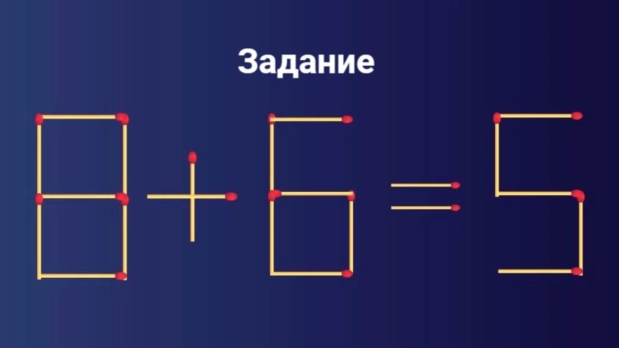 IQ-тренажер: переставьте спичку за 11 секунд, чтобы пример 8+6=5 стал верным