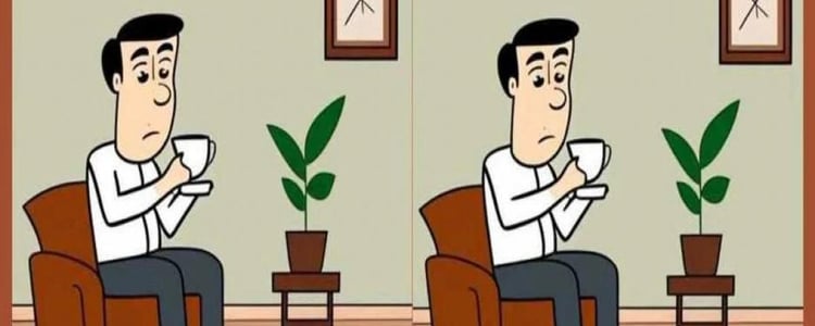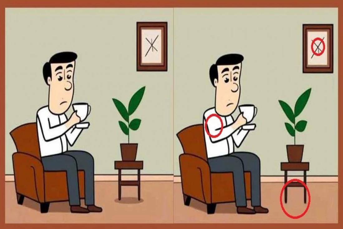В этой головоломке перед вами два изображения мужчины, пьющего чай. На первый взгляд кажется, что картинки идентичны, но на самом деле между ними есть три небольших отличия. Вам нужно найти их как можно быстрее — всего за 17 секунд!