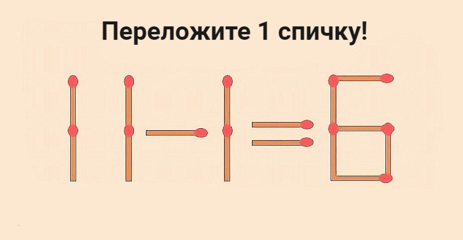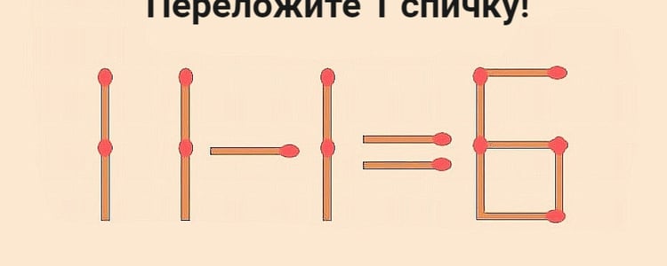 Испытание для вашего ума. Сделайте пример 11-1=6 правильным перестановкой одной спички