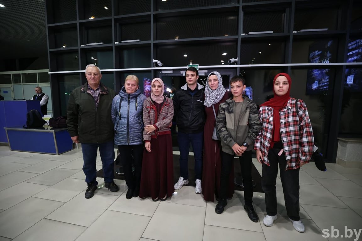 В Беларусь вернулась большая белорусско-палестинская семья Абуалкас, эвакуированная из сектора Газа. Родители спасенной белоруски приехали из Слонима встретить родных в аэропорт.