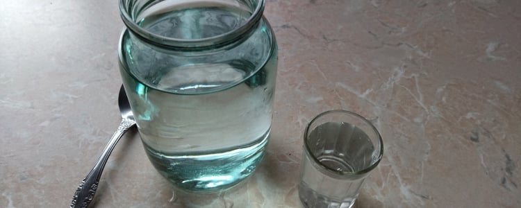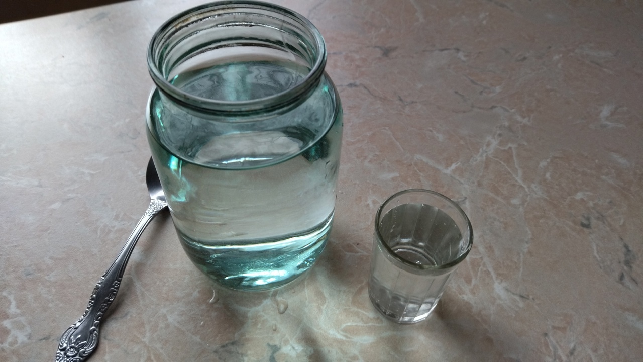 Нам нужно отмерить 1 грамм борной кислоты. Это десятая часть банки, то есть 100 мл, обычная стопка (стограммовка). Если есть мерный стаканчик, то 100 мл можно отмерить также им.