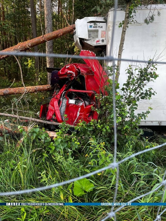 Кіроўца фуры МАН 1978 гогда нараджэння рухаўся ў бок Маладзечна і ў нейкі момант заснуў за рулём, з’ехаў у правы па ходу руху кювет і стукнуўся ў засцерагальную сетку ад дзікіх жывёл.