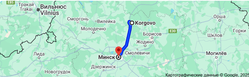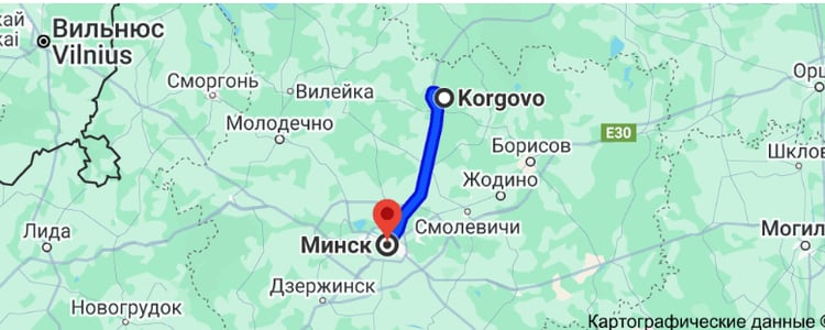 Расстояние от Коргово до Минска — 80 км, до Логойска — 42 км, до Лепеля — 86 км.