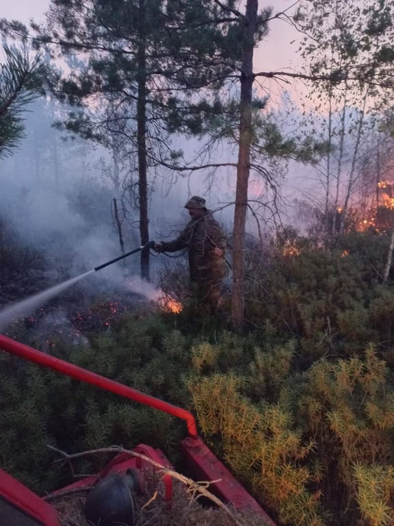 Тушение затруднено отсутствием подъездных путей и заболоченностью местности.