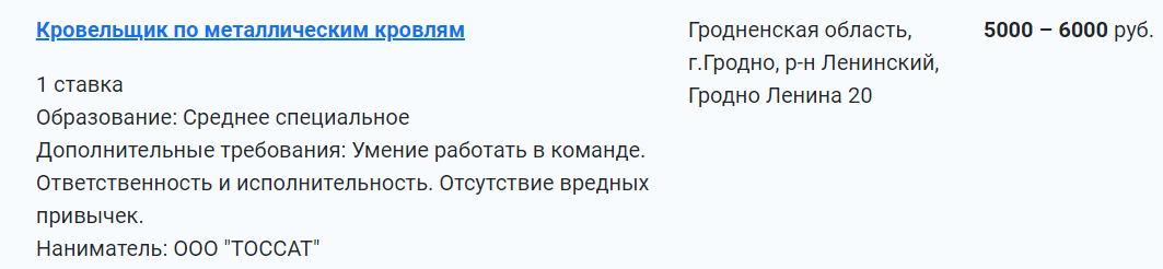 На сегодня, 21 сентября, согласно информации сайта государственной службы занятости самой дорогой является вакансия кровельщика по металлическим кровлям.