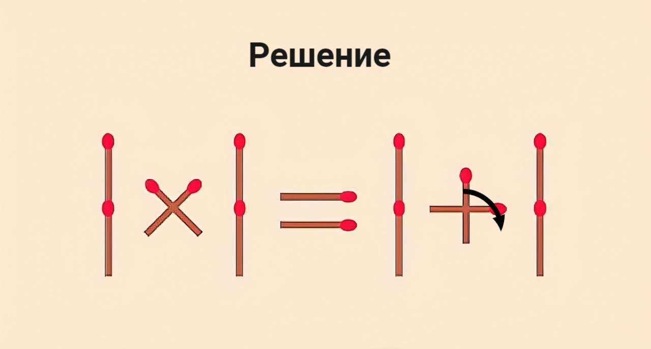 Сегодня мы предлагаем вам найти такой простой и красивый выход из следующей непростой ситуации. В 1×1=1+1 нужно переставить на другое место 1 спичку, чтобы равенство оказалось правильным. Кто окажется в дамках, а значит в победителях, за 10 секунд? Возможно, это будете вы?! Готовы проверить?