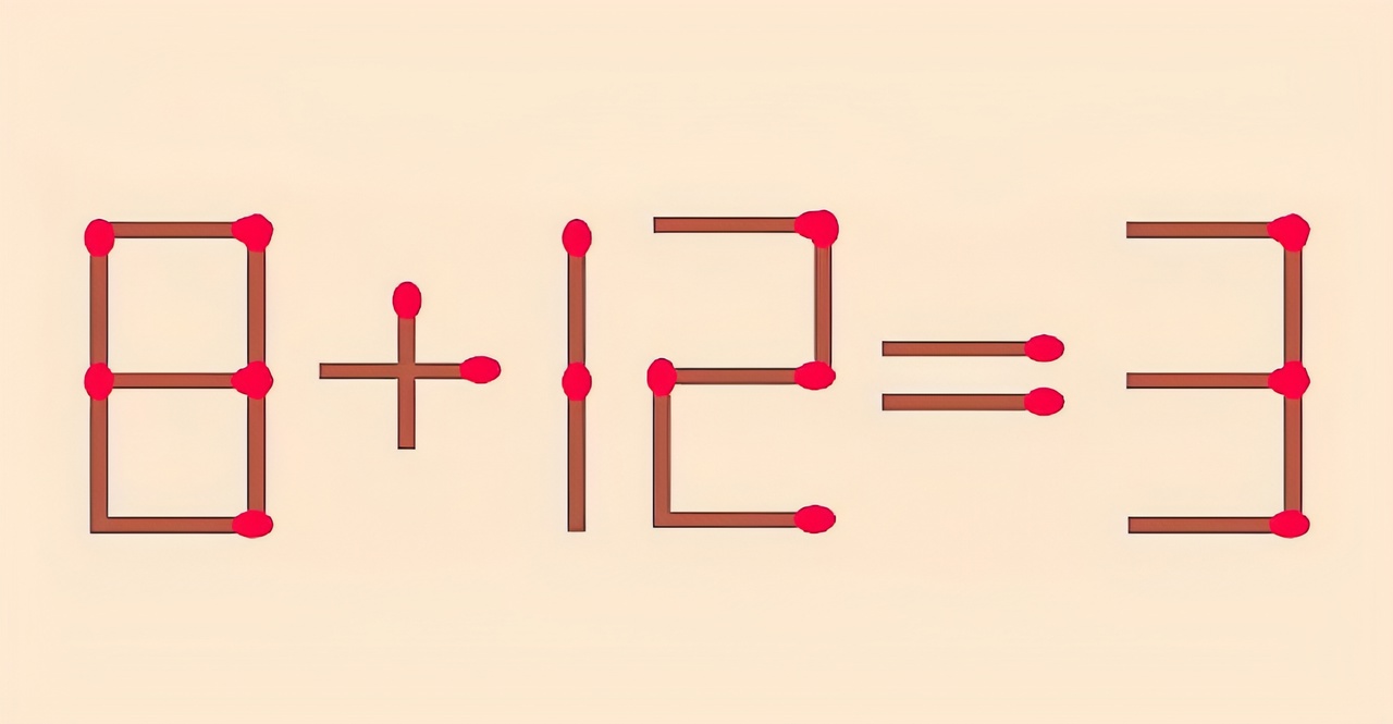 В 8+12=3 нужно переставить на другое место 1 спичку, чтобы равенство стало правильным.