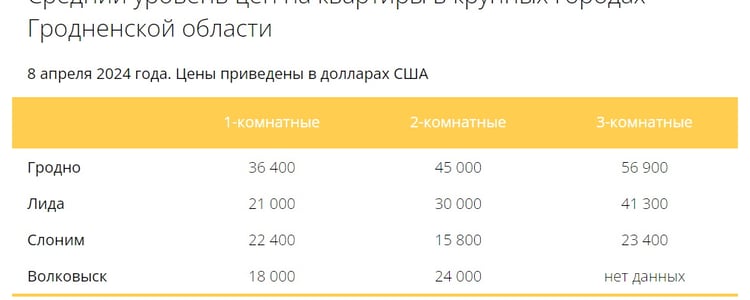 В Гродно цены на квартиры в целом остались стабильными, с незначительным снижением средней цены на 0.1%, достигшей отметки в 812 долларов за квадратный метр. В то время как цены на однокомнатные квартиры в Гродно выросли на 0.8%, до 894 долларов за метр квадратный, стоимость двухкомнатных и трехкомнатных квартир показала незначительное снижение.