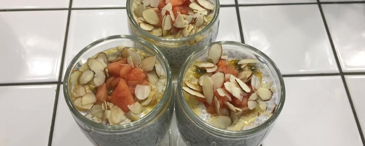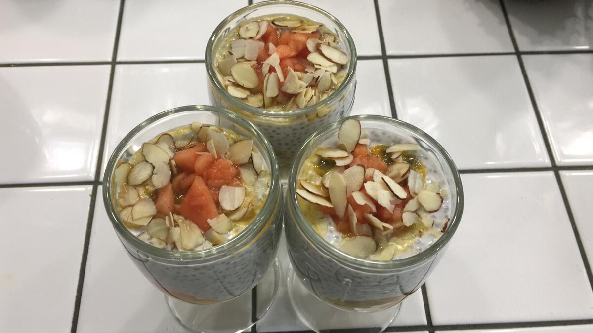 «В стакан положили маракуйю, столовую ложку семян чиа, немножко тростникового сахара, налили полстакана кокосового молока — а когда через несколько часов все это благодаря чиа превратилось в упругое желе, сверху положили немного папайи и миндальных лепестков».