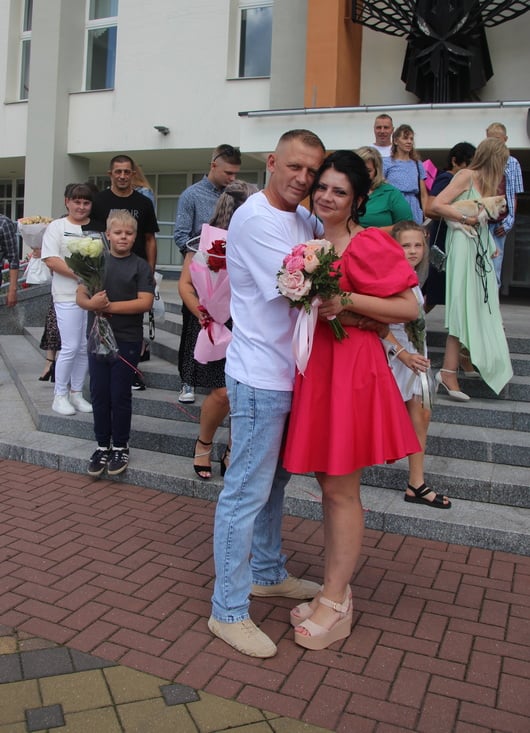10 августа Владимир и Ксения официально узаконили свои отношения в Слонимском отделе ЗАГС. Родные и близкие поздравляли новоиспеченных супругов с днем свадьбы.