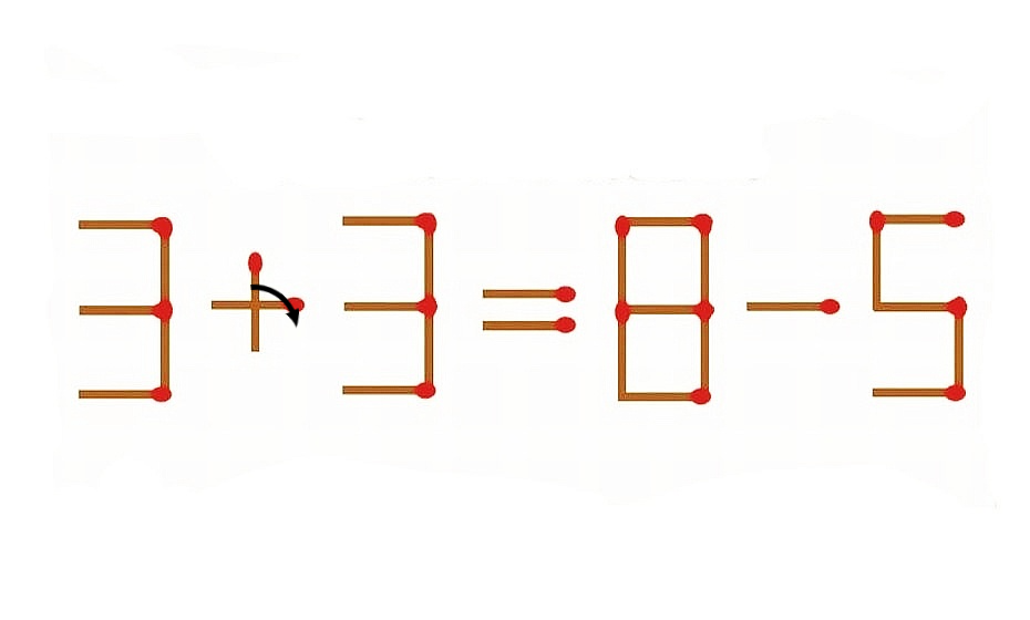 Предлагаем вам решить эту занимательную головоломку. Условие — нужно переместить одну спичку так, чтобы уравнение стало верным.