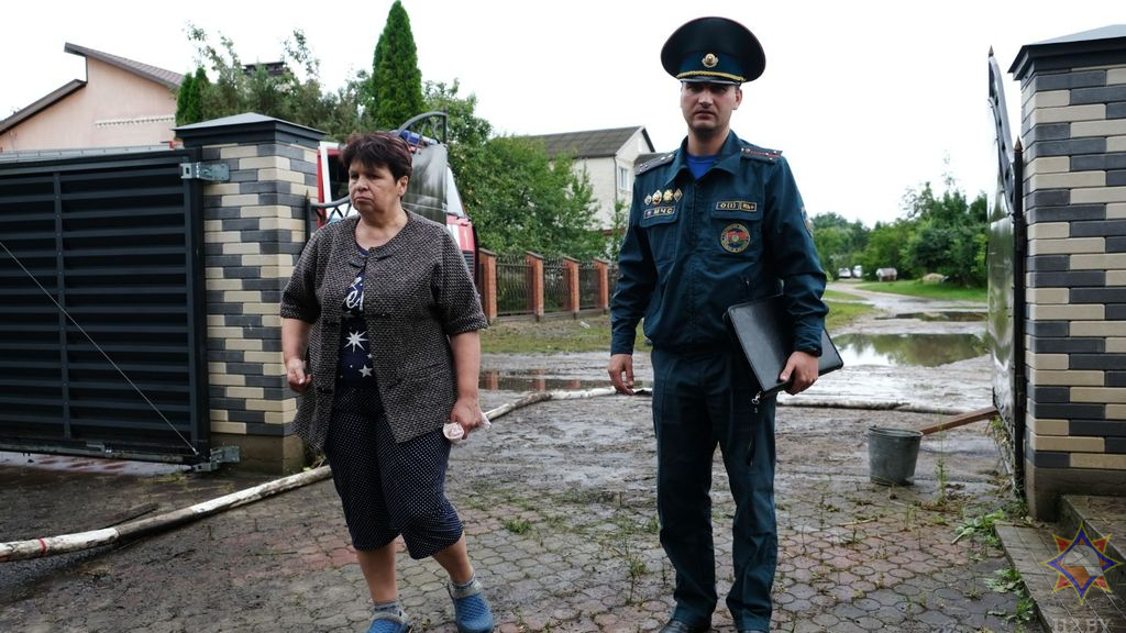 Из-за ливня, который прошел сегодня, 25 июля, в Слониме, спасатели оказывают помощь людям