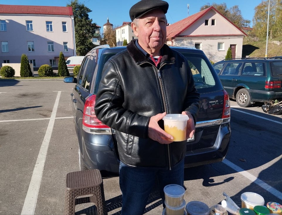 Местный пчеловод Владимир Васильевич предлагал гречишный и вересковый мед по цене 15–16 рублей за литровую банку. Он также поделился своим советом: съедать ложку меда перед сном для крепкого и здорового сна, что подтвердил один из покупателей, страдающий бессонницей.